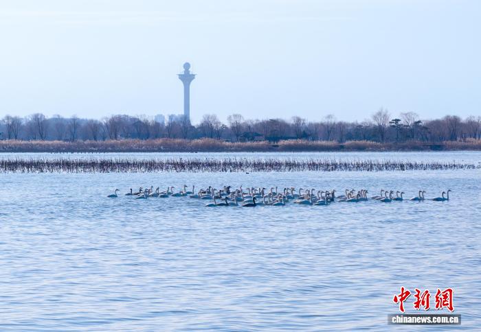 越冬白天鹅“栖居”山西长治漳泽湖国家城市湿地公园